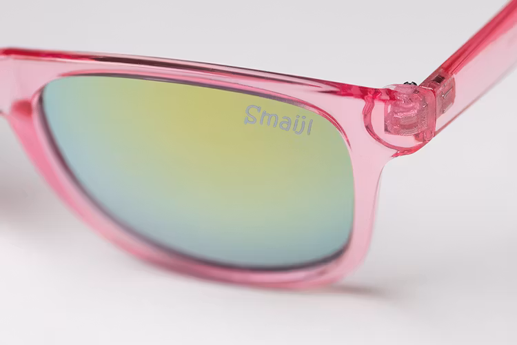 Mumsigt rosa unisexbåge med spegelglas. Solglasögonen har certifierat UV Skydd 400, vilket innebär att de filtrerar bort alla UV-strålar som har en våglängd upp till 400 nanometer, vilket innefattar all UV-A och UV-B strålning.